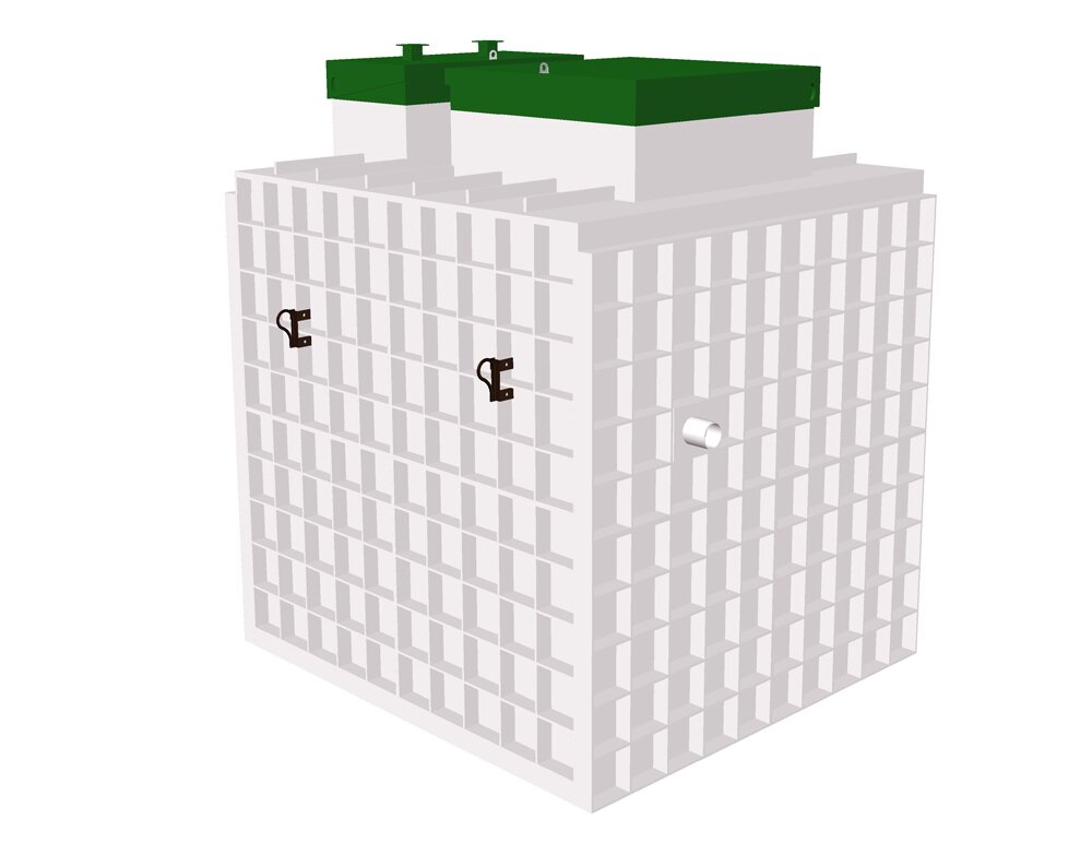 Автономная канализация для дачи Топас 30Технические характеристики: Количество постоянно проживающих — 30 человек Переработка стоков за сутки — 6 м3 Залповый сброс, максимальный — 1200 л. Потребляемая энергия, сутки — 3,6 кВт. Масса — 760 кг Размеры, м — 2,6 x 2,2 x 2,25